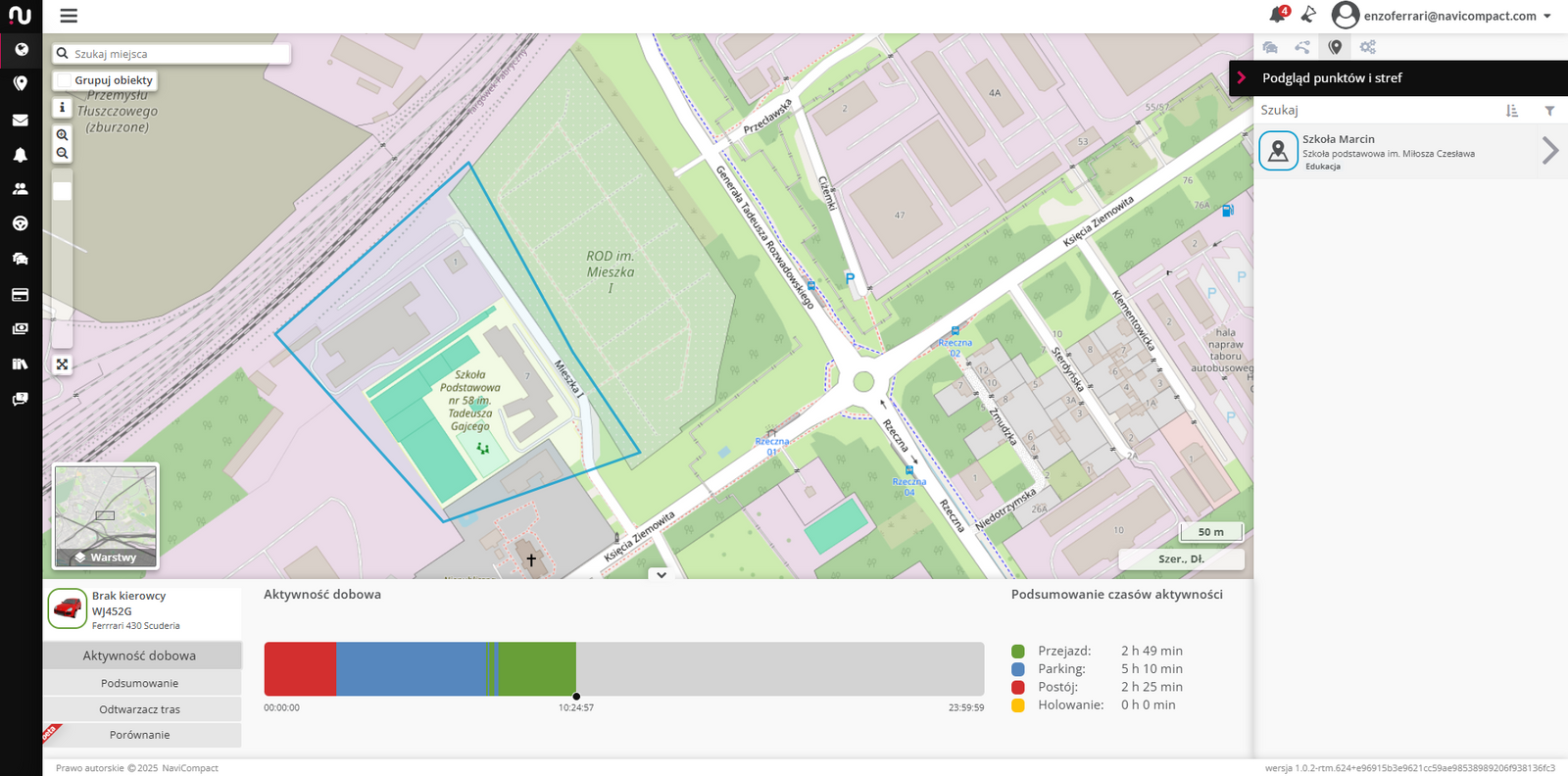 Podgląd parametrów jazdy – prędkość, postoje, dystans